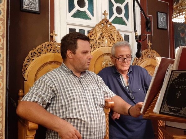 Τα ιερά αναλόγια διηκόνησαν ο Καθηγητής της Σχολής Βυζαντινής Μουσικής της Ιεράς Μητροπόλεως Χαλκίδος και Πρωτοψάλτης του Μητροπολιτικού Ι. Ν. Αγ. Δημητρίου Χαλκίδος κ. Γεώργιος Καραγκούνης, ο Ιεροψάλτης του Ι. Ν. Αγ. Νικολάου Ερετρίας κ. Δημήτριος Πετρογιάννης, ο Πρωτοψάλτης της Ενορίας κ. Κωνσταντίνος Τσέτσικας και ο Λαμπαδάριος κ. Ανδρέας Ματσούκας, ενώ όλες οι Ιερές Ακολουθίες μεταδόθηκαν ζωντανά από τον Ραδιοφωνικό Σταθμό της Ιεράς Μητροπόλεως Χαλκίδος (97,7 fm).