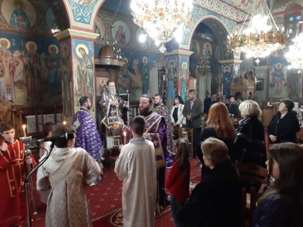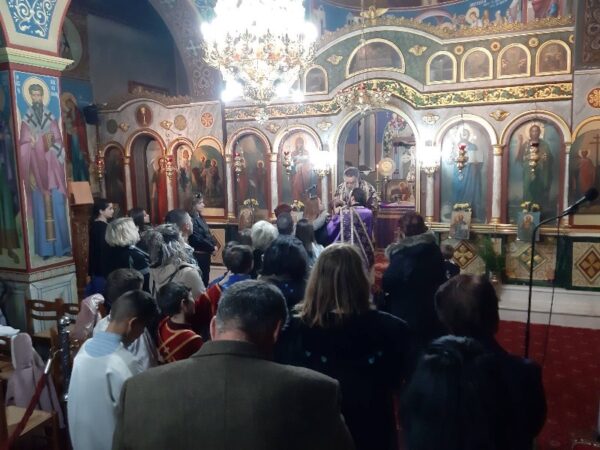 Το απόγευμα της Τετάρτης 11 Μαρτίου 2020, ο Σεβασμιώτατος Μητροπολίτης Χαλκίδος κ. Χρυσόστομος επισκέφθηκε την Ενορία Ευαγγελισμού της Θεοτόκου Μύτικα, όπου τέλεσε την Προηγιασμένη Θεία Λειτουργία συμπαραστατούμενος από τον Ιεροκήρυκα Αρχιμ. Τιμόθεο Μπαϊμπάκη, τον Εφημέριο της Ενορίας Πρεσβ. Δημήτριο Παλληκαρίου και τον Διάκ. Ευγένιο Τσάλλα, με τη συμμετοχή πολλών ευσεβών ενοριτών.