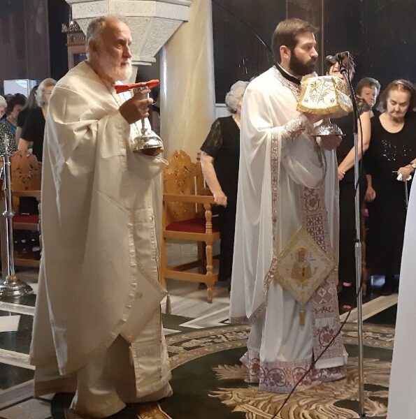 Αμέσως μετά, ο Σεβασμιώτατος, με τους συνοδούς του Κληρικούς, μετέβη στον Ιερό Ναό Παναγίας Παραβουνιώτισσας Ερετρίας, όπου τέλεσε την Εξόδιο Ακολουθία της Κηδείας του αείμνηστου Γεωργίου Πετρογιάννη, ιεροψάλτη της Ενορίας.