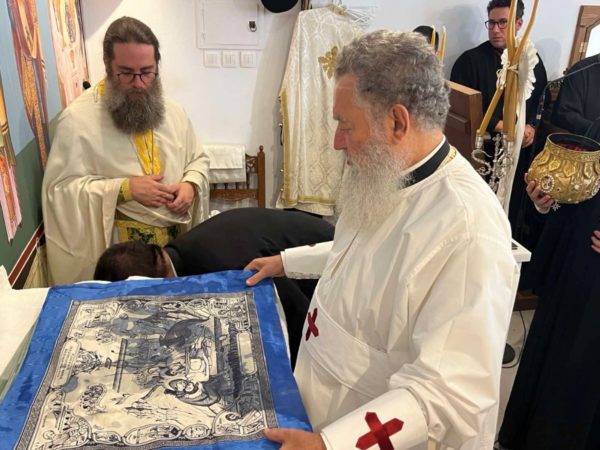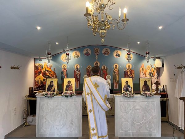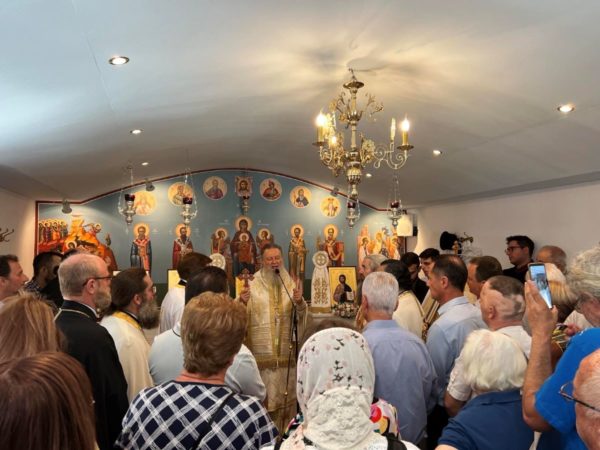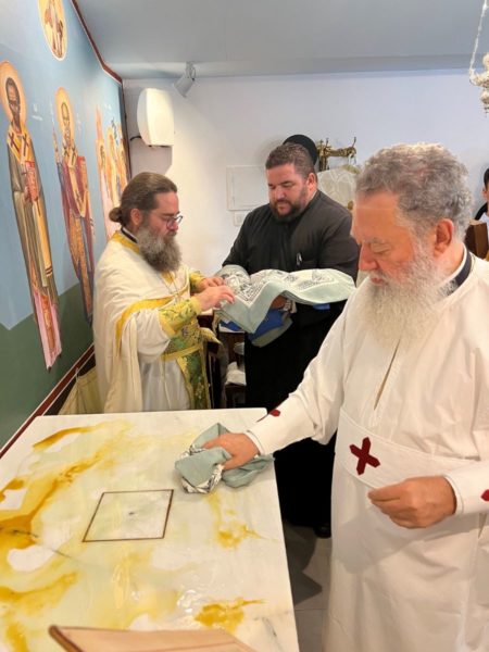 Την επομένη ημέρα, 12 Ιουλίου, μετά τον Όρθρο, ο Σεβασμιώτατος ιερούργησε τα εγκαίνια του Ι. Παρεκκλησιού, κάνοντας ερμηνευτικές επεξηγήσεις στους πιστούς, και εν συνέχεια τέλεσε την πρώτη Αρχιερατική Θεία Λειτουργία σε αυτό.