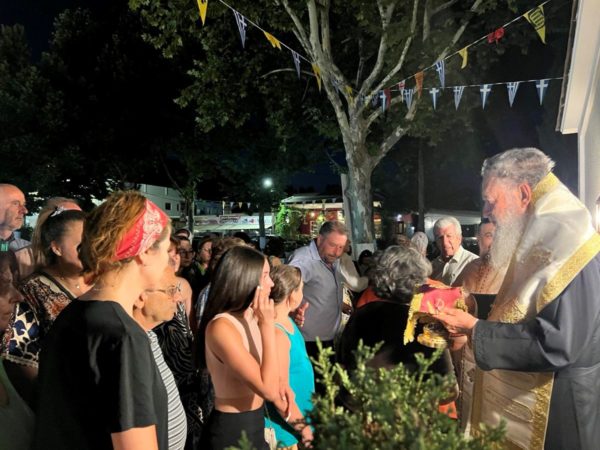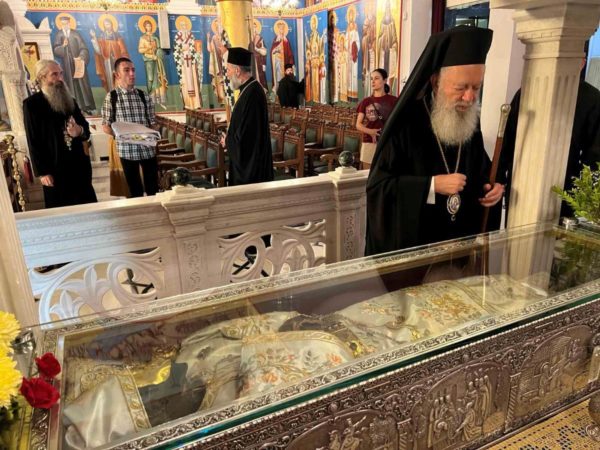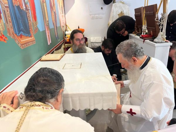 Κατά τον Εσπερινό, πραγματοποιήθηκε και η υποδοχή των αποτμημάτων των ιερών λειψάνων των Αγίων, τα οποία την επόμενη ημέρα τοποθετήθηκαν εντός της νέας Αγίας τραπέζης, ενώ κατά την ι. ακολουθία, ο Σεβασμιώτατος κ. Χρυσόστομος κήρυξε κατάλληλα τον θείο λόγο και έθεσε προς προσκύνηση των πιστών τα ιερά λείψανα.