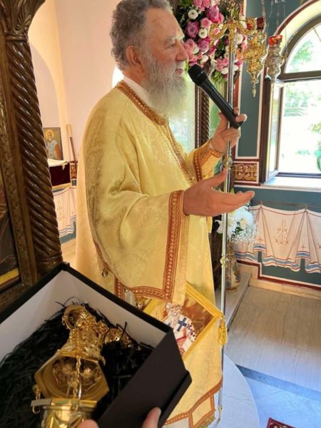 Λίγο πριν την απόλυση της Θείας Λειτουργίας, ο Σεβασμιώτατος ευχαρίστησε τους συμμετέχοντες Κληρικούς και Λαϊκούς, ενώ προσέφερε, ως δώρο, στο ι. παρεκκλήσιο ένα θυμιατό εις ανάμνηση της ευσήμου ημέρας των εγκαινίων και για την επιτέλεση της λατρείας του Θεού.
