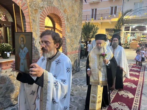 Κατά τον Εσπερινό, πραγματοποιήθηκε και η υποδοχή των αποτμημάτων των ιερών λειψάνων των Αγίων, τα οποία την επόμενη ημέρα τοποθετήθηκαν εντός της νέας Αγίας Τραπέζης, ενώ κατά την ι. ακολουθία, ο Σεβασμιώτατος κ. Χρυσόστομος κήρυξε κατάλληλα τον θείο λόγο, περιγράφοντας ως ημέρα χαράς και ευφροσύνης την εόρτιο μνήμη του Αγίου Βαβύλα. Αναφέρθηκε αρχικά στην προσωπικότητα του αγίου προφήτου Μωυσέως του θεόπτου, επισημαίνοντας την ενότητα της Παλαιάς με την Καινή Διαθήκη. Έπειτα, ο Σεβασμιώτατος περιέγραψε τον βίο και το μαρτύριο του Αγίου Βαβύλα, επισημαίνοντας ότι η παρουσία ενός ναού αφιερωμένου σε έναν όχι συνηθισμένο Άγιο, δηλώνει την ευλάβεια και την καλλιέργεια των ανθρώπων στη σχέση τους με τους Αγίους. Κλείνοντας, ο Σεβασμιώτατος, αφού εξήγησε την αξία των εγκαινίων για ένα ναό, προέτρεψε τους παρόντες πιστούς να ζουν την λειτουργική ζωή της Εκκλησίας, να αγαπούν τον αγώνα για αγιασμό και να θεωρούν τους εαυτούς τους προνομιούχους, γιατί είναι μέλη του Σώματος του Χριστού και οι αγώνες τους, οι ασκήσεις τους και κάθε έργο προς αγιασμό τους και δόξα του Θεού έχουν ουράνια ανταπόδοση και ευλογία.