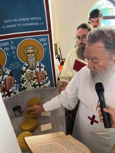 Λίγο πριν την απόλυση της Θείας Λειτουργίας, ο Σεβασμιώτατος ευχαρίστησε τους συμμετέχοντες Κληρικούς και Λαϊκούς, ενώ προσέφερε, ως δώρο, στο ι. παρεκκλήσιο ένα θυμιατό εις ανάμνηση της ευσήμου ημέρας των εγκαινίων και για την επιτέλεση της λατρείας του Θεού.