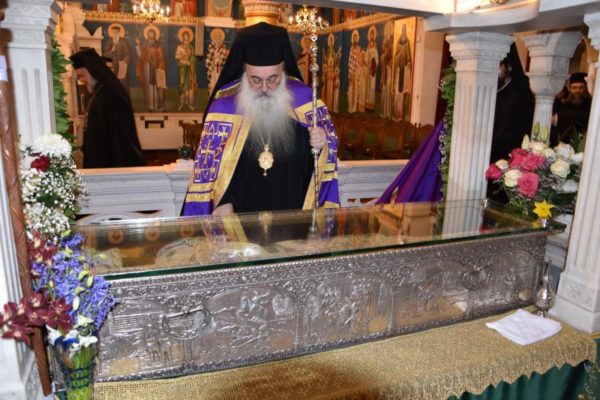 Εκκλησιάσθηκαν ο εφησυχάζων Μητροπολίτης κ. Ιωσήφ, σύσσωμοι οι ωφελούμενοι φοιτητές του Θεολογικού Φοιτητικού Οικοτροφείου της Αποστολικής Διακονίας και πλήθος προσκυνητών, ο οποίοι, παρά τον εργάσιμο χαρακτήρα της ημέρας, προσέρχονταν από πολλά μέρη της Πατρίδος μας και του Εξωτερικού να αποτίσουν τιμή στον όσιο Ιωάννη.