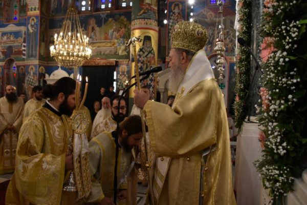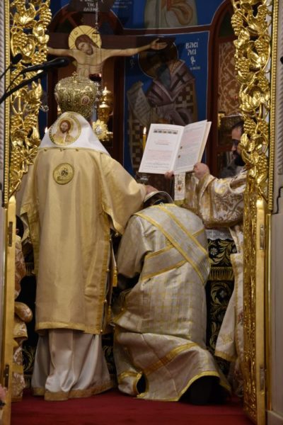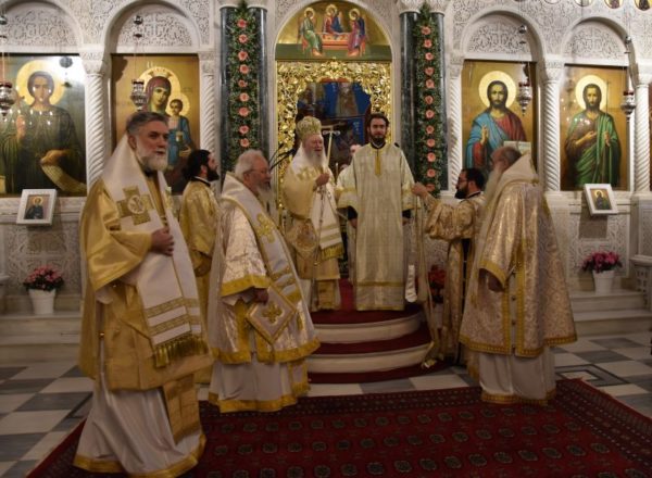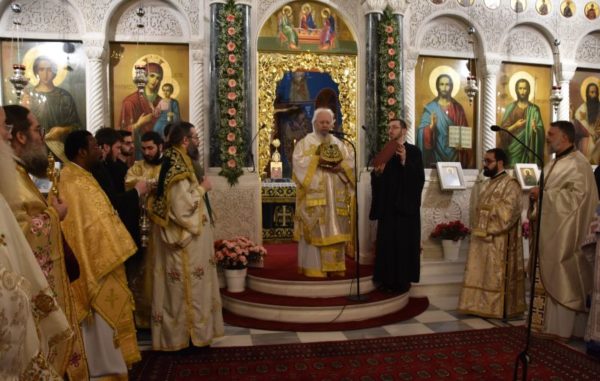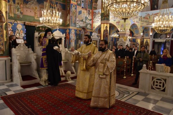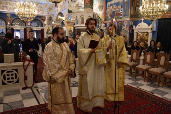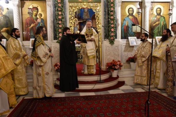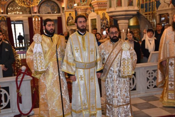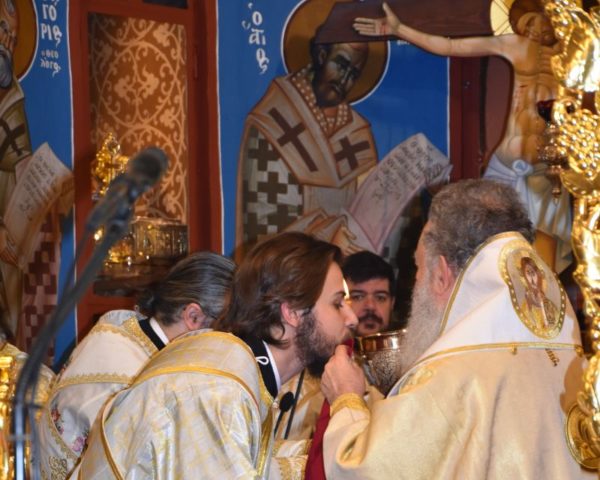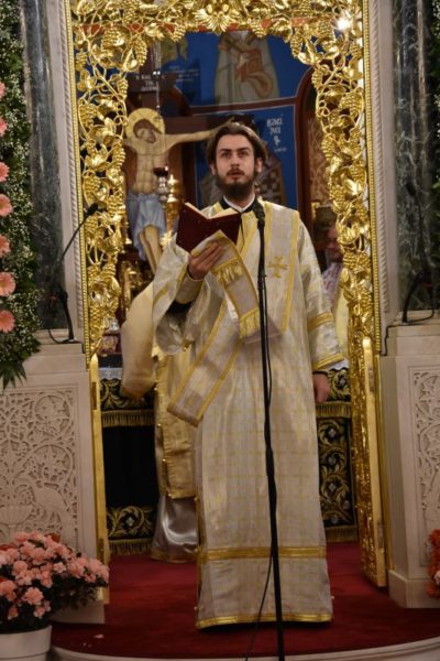 Κατά το ακολουθήσαν Αρχιερατικό Συλλείτουργο, προέστη ο Σεβασμιώτατος Μητροπολίτης Χαλκίδος κ. Χρυσόστομος, ο οποίος τέλεσε και την εις Διάκονον χειροτονία του μοναχού Μαξίμου Χοϊένκο, αδελφού της Ιεράς Μονής Αγίου Γεωργίου «ΑΡΜΑ» και φοιτητού της Θεολογικής Σχολής του ΕΚΠΑ.