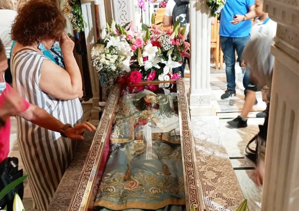 Σύμφωνα με το evima.gr, ο κόσμος με δάκρυα χαράς πετούσε τριαντάφυλλα την ώρα της περιφοράς του σκηνώματος του Αγίου, που θησαυρίζεται στο προσκύνημα, ένα ιερό λείψανο που μεταφέρθηκε με απερίγραπτες θυσίες ως θησαυρός από τους Προκοπιείς Πρόσφυγες κατά τη Μικρασιατική Καταστροφή.