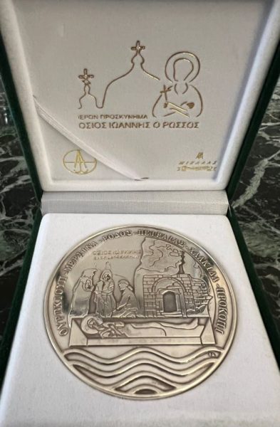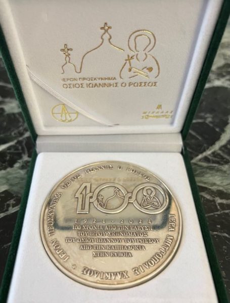 Φιλοτέχνηση και έκδοση αναμνηστικού μεταλλίου για τα 100 χρόνια του Οσίου Ιωάννη του Ρώσσου στην Εύβοια