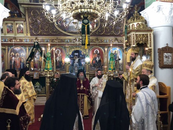Την επόμενη ημέρα το πρωί, Σάββατο 18 Ιανουαρίου, πραγματοποιήθηκε στο πανηγυρίζοντα Ιερό Ναό η Αρχιερατική Χοροστασία και εν συνεχεία η Θεία Λειτουργία, προεξάρχοντος του Θεοφιλεστάτου κ. Φιλοθέου, ο οποίος κήρυξε τον θείο λόγο με θέμα: Ο αγώνας του Αγίου Αθανασίου για την ενότητα των πιστών στην Μία, Αγία, Καθολική και Αποστολική Εκκλησία και ο τρόπος, διά του οποίου καλούμαστε να πραγματώνουμε την ενότητά μας στο Σώμα του Χριστού.