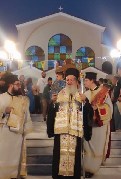 Την Κυριακή 16 Ιουλίου 2023 το απόγευμα, ο Μητροπολίτης Χαλκίδος κ. Χρυσόστομος μετέβη στον πανηγυρίζοντα Ιερό Ναό, όπου χοροστάτησε στον Μεγάλο Πανηγυρικό Εσπερινό, κήρυξε το θείο λόγο και προεξήρχε της Λιτανείας της Ι. Εικόνος της Αγίας.