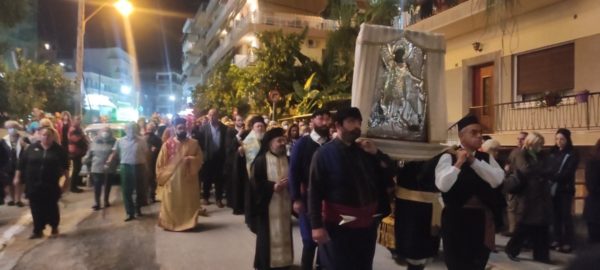 Ο Εσπερινός ολοκληρώθηκε με την πληθωρική συμμετοχή Κλήρου, Αρχών του τόπου και Λαού στη λιτάνευση της εφεστίου ιεράς εικόνος του Αρχαγγέλου Μιχαήλ, την οποία είχαν κομίσει στη Χαλκίδα Μικρασιάτες πρόσφυγες.