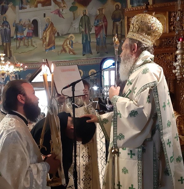 Πριν τα Αναγνώσματα της Θείας Λειτουργίας, ο Σεβασμιώτατος χειροθέτησε Αναγνώστη τον μαθητή Γ΄ Λυκείου, Αθανάσιο-Παρθένιο Γαϊτανάρο, νέο με αγάπη στη μελέτη των ιερών γραμμάτων και σπουδαστή της Σχολής Βυζαντινής Μουσικής της Ι. Μητροπόλεως Χαλκίδος. Μάλιστα, ο Σεβασμιώτατος, απευθυνόμενος προς τον νέο Αναγνώστη, ανέφερε ότι τώρα του ανατίθεται η υπευθυνότητα να προσκαλεί τους πιστούς στην μετοχή των ιερών Μυστηρίων, δια της ορθής αναγνώσεως των Γραφών, η οποία πρέπει να συντονίζει τα μάτια και τα αυτιά με το νου και την καρδιά, ώστε όλα μαζί να δοξολογούν τον Θεό.