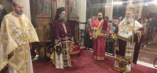 Ο Σεβασμιώτατος Μητροπολίτης Χαλκίδος κ. Χρυσόστομος μετέβη στον Μητροπολιτικό Ιερό Ναό Αγίου Δημητρίου Χαλκίδος, όπου και χοροστάτησε στον Όρθρο και στην συνέχεια προέστη στην Θεία Λειτουργία, με συλλειτουργούς του τον προϊστάμενο της Ενορίας, Αρχιμανδρίτη Αιμιλιανό Χρήστου, τους Πρωτοπρεσβυτέρους Γεώργιο Πολυκαρπίδη και Αθανάσιο Τρίκκα και τον Διάκονο Σταύρο Καλαφάτη, ενώ διηκόνησαν την ιερά υμνωδία οι κ. Γεώργιος Καραγκούνης Πρωτοψάλτης και καθηγητής της Σχολής Βυζαντινής Μουσικής της Ι. Μητροπόλεως Χαλκίδος και Ιωάννης Δέδες Λαμπαδάριος του Μητροπολιτικού Ιερού Ναού.