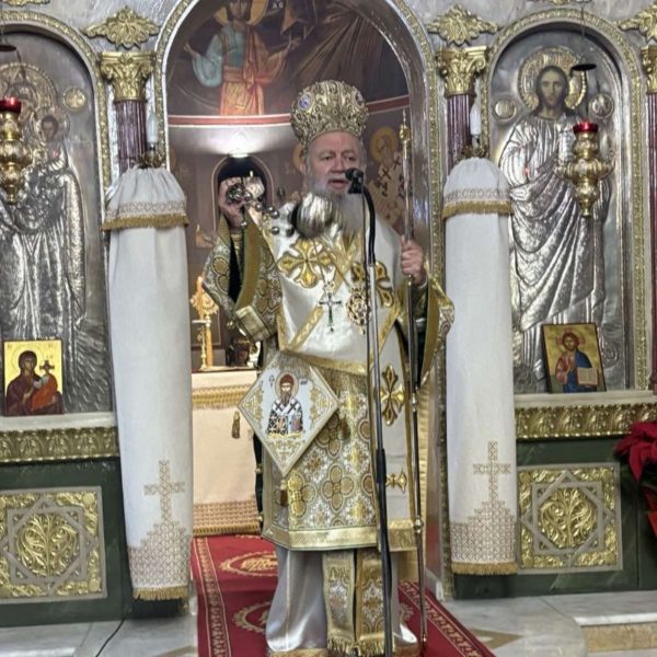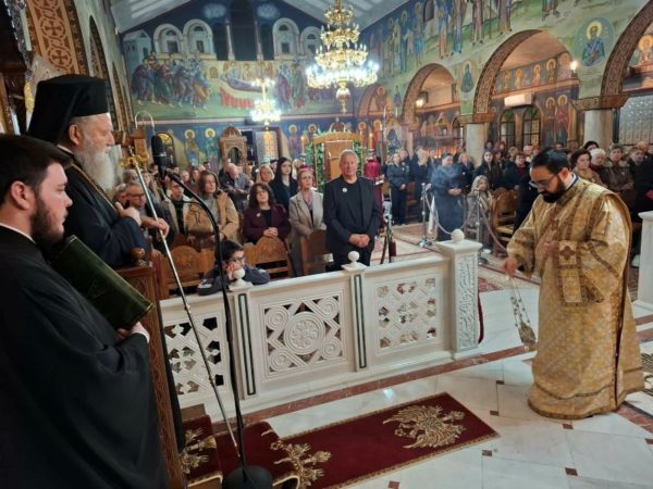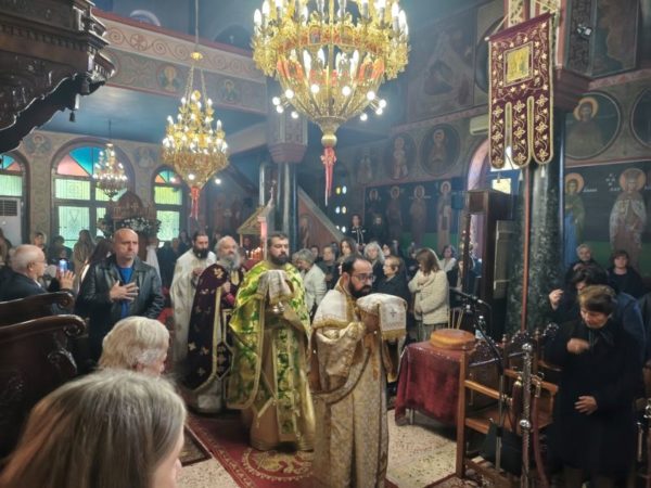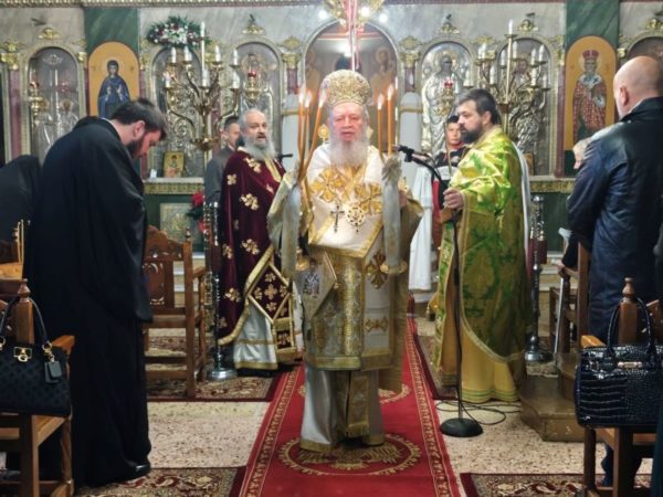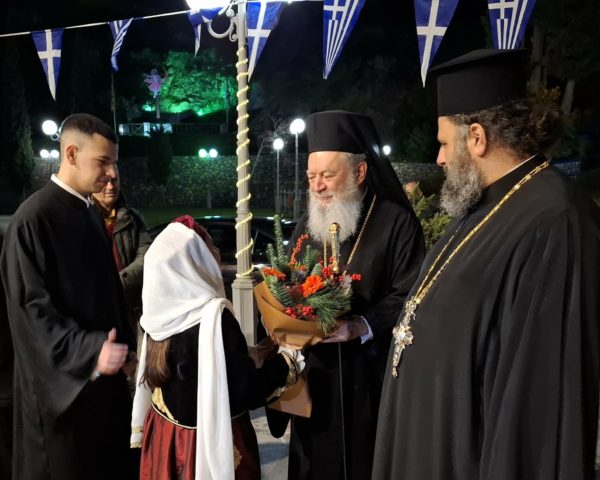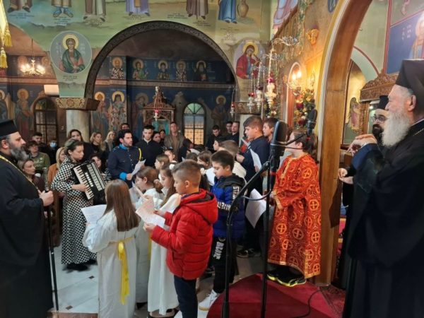 Προ της λιτανείας, τα παιδιά των κατηχητικών της Ενορία με την καθοδήγηση του δραστήριου εφημέριου, πρωτοπρεσβ. Ιωάννου Γκρινιάρη και των συνεργατών του κατηχητών απέδωσαν το τροπάριο του αγίου, της Εορτής των Χριστουγέννων, αλλά και παραδοσιακά κάλαντα της Πατρίδος μας. Τέλος, τα παιδιά προσέφεραν στον Σεβασμιώτατο μια εικόνα της Παναγίας αγιογραφημένη από το εργαστήρι αγιογραφίας της Ενορίας.