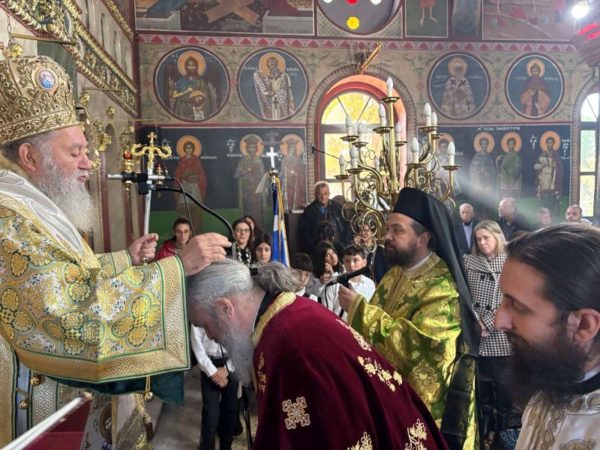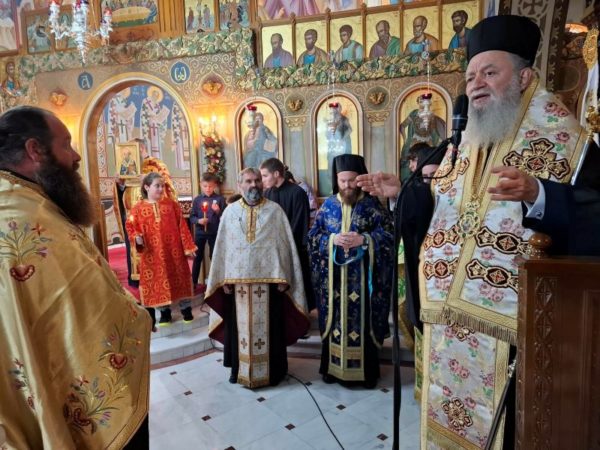 Στο τέλος της Θείας Λειτουργίας, ο Σεβασμιώτατος προχείρισε Πρωτοπρεσβύτερο τον Εφημέριο της Ενορίας, π. Φώτιο Πάσχο, αναγνωρίζοντας την ανύστακτη διακονία του τόσο στην Ενορία, όσο και όπου αλλού τον χρειάζεται η τοπική Εκκλησία, όπως στην Ιερά Μονή της Παναγίας Μυρτιδιώτισσας Πάλιουρα.