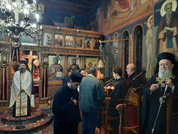 Τον Σεβασμιώτατο, κατά τον Εσπερινό, πλαισίωσαν οι Αρχιμανδρίτες Ιωάννης Καραμούζης-Αρχιγραμματεύς της Ιεράς Συνόδου της Εκκλησίας της Ελλάδος και ιεροκήρυξ της Ιεράς Μητροπόλεως Χαλκίδος, Αιμιλιανός Χρήστου-προϊστάμενος του Μητροπολιτικού Ιερού Ναού Αγίου Δημητρίου Χαλκίδος, οι πρωτοπρεσβ. Σταμάτιος Μπασδέκης-εφημέριος της Ενορίας Κοιμήσεως Θεοτόκου Βασιλικού Χαλκίδος, Αθανάσιος Τρίκκας-τριτεύων εφημέριος του Μητροπολιτικού Ιερού Ναού Αγίου Δημητρίου Χαλκίδος και οι διάκονοι Σταύρος Καλαφάτης και Ειρηναίος Σταμέλος.