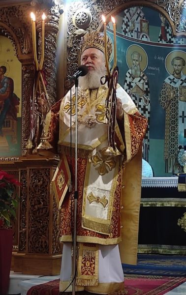 Τον θείο λόγο κήρυξε ο Σεβασμιώτατος, αναπτύσσοντας τον βίο του Αγίου Στεφάνου και αναφέροντας χαρακτηριστικά ότι, σύμφωνα με το παράδειγμα του Χριστού επί του Σταυρού και ο Άγιος Στέφανος παρακαλούσε τον Θεό να παραβλέψει την αμαρτία των φονευτών του, ώστε οι λίθοι της θανατώσεώς του να γίνουν σκαλοπάτια που τον οδήγησαν στον παράδεισο.