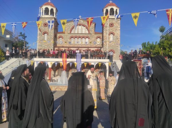 Την Κυριακή 15 Μαΐου 2022 το πρωί ετελέσθη ο Όρθρος, στον οποίο χοροστάτησε ο Σεβασμιώτατος Μητροπολίτης Ειρηνουπόλεως κ. Νίκανδρος και εν συνεχεία το Αρχιερατικό Συλλείτουργο, στο οποίο προεξήρχε ο Σεβασμιώτατος Μητροπολίτης Καρυστίας και Σκύρου κ. Σεραφείμ, συλλειτουργούντων και των αγίων Αρχιερέων Ειρηνουπόλεως, Ωρεών και Χαλκίδος. Στην θαυμάσια ομιλία του ο άγιος Καρυστίας ονόμασε την παρούσα ημέρα «Κυριακή των θαυμάτων», αφού στα αγιογραφικά αναγνώσματα περιγράφονται τρία διδακτικά θαύματα και μέσα στον πανηγυρίζοντα Ι. Ναό όλοι μετέχουμε στο θαύμα της ζωντανής παρουσίας των Ευβοέων Αγίων, διά των Ιερών Λειψάνων τους.