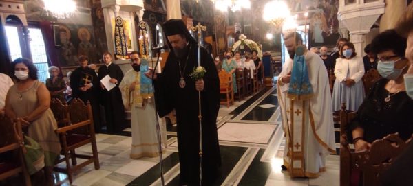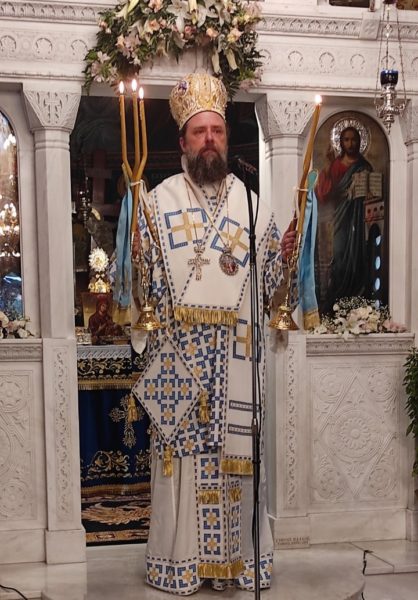 Το πρωί της κυριωνύμου ημέρας, ο Σεβασμιώτατος Μητροπολίτης Χαλκίδος κ. Χρυσόστομος και ο περί αυτόν ιερός Κλήρος, με επικεφαλής τον Πρωτοσύγκελλο της Ι. Μητροπόλεως Αρχιμ. Νικόδημο Ευσταθίου, υποδέχθηκαν τον Θεοφιλέστατο Επίσκοπο Ωρεών κ. Φιλόθεο, Αρχιγραμματέα της Ι. Συνόδου της Εκκλησίας της Ελλάδος, ο οποίος χοροστάτησε στον Όρθρο, προεξήρχε στη Θεία Λειτουργία και κήρυξε τον θείο λόγο, αναφερθείς στην Υπεραγία Θεοτόκο και την παρακαταθήκη υπακοής και εφαρμογής του θελήματος του Θεού, που αφήνει σε κάθε γενεά ανθρώπων, όπως Εκείνη πρώτη εφάρμοσε και έγινε ο ανθρώπινος εργάτης της σωτηρίας μας.