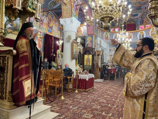 Ο Σεβασμιώτατος μετέβη στη δεύτερη έδρα της Ιεράς Μητρόπολης, συνοδευόμενος από τον Αρχιμανδρίτη Νεκτάριο Ευγενικό και τον Διάκονο Σταύρο Καλαφάτη.