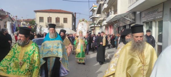 Αμέσως μετά, έλαβε χώρα μεγαλειώδης λιτανεία ανά τας οδούς της Ιστιαίας, με την συμμετοχή του Ιερού Κλήρου της περιφερείας, των εκπροσώπων των Αρχών του Τόπου, με επικεφαλής τον Υφυπουργό Αγροτικής Ανάπτυξης κ. Σίμο Κεδίκογλου, τον Βουλευτή Ευβοίας κ. Αθανάσιο Ζεμπίλη, τον Περιφερειάρχη Στερεάς Ελλάδος κ. Φάνη Σπανό, τον Αντιπεριφερειάρχη Ευβοίας κ. Γεώργιο Κελαϊδίτη, τους Δημάρχους Ιστιαίας-Αιδηψού κ. Ιωάννη Κοντζιά και Διρφύων-Μεσσαπίων κ. Γεώργιο Ψαθά, τον Λιμενάρχη Αιδηψού Αντιπλοίαρχο κ. Σωτήριο Δανίκα και σύμπαντος του πιστού Λαού.