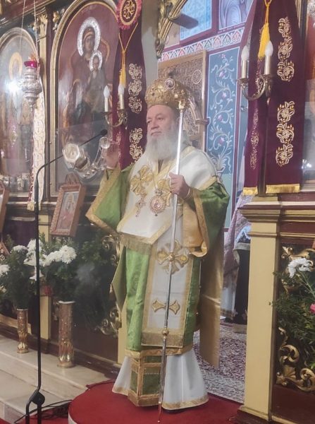 Το απόγευμα της παραμονής ο Σεβασμιώτατος χοροστάτησε στον τελεσθέντα Μεγάλο Πανηγυρικό Εσπερινό και κήρυξε τον θείο λόγο αναφέροντας ότι οι Άγιοι Αθανάσιος και Κύριλλος διεδραμάτισαν σπουδαιότατο ρόλο στη διαφύλαξη ανόθευτης και κρυστάλλινης της Πίστεώς μας. Μάλιστα με τους αγώνες του, ο Άγιος Αθανάσιος κατέθεσε ανόθευτη την αλήθεια, την οποία υιοθέτησε η Ορθόδοξη Εκκλησία αυτούσια: «ότι τα μεν κτίσματα έξωθέν εστιν έργα τού ποιούντος, το δε γέννημα ουκ έξωθεν, ως έργον, αλλ’ εκ τού Πατρός εστίν ίδιον της ουσίας. Διόπερ τα μεν κτίσματα· ο δε Λόγος τού Θεού, Υιός μονογενής». Για την εδραία του πίστη, ο Μέγας Αθανάσιος δοκιμάσθηκε με πολλά παθήματα και εξορίες. Και οι δύο μεγάλοι ιεράρχες, Αθανάσιος και Κύριλλος έλαμψαν διά των έργων της υπερασπίσεως της Πίστεως. Δηλαδή, οι Άγιοι έκαναν αγώνα που άξιζε και έπρεπε να κάνουν, όχι για να υποστηρίξουν τον Χριστό και την Παναγία, αλλά για να πληροφορήσουν την αλήθεια στους ανθρώπους, οι οποίοι, ως κοινωνοί αυτής της Πίστεως και μέλη της Εκκλησίας, να έχουμε δικαίωμα κληρονομικό στη βασιλεία του Θεού.