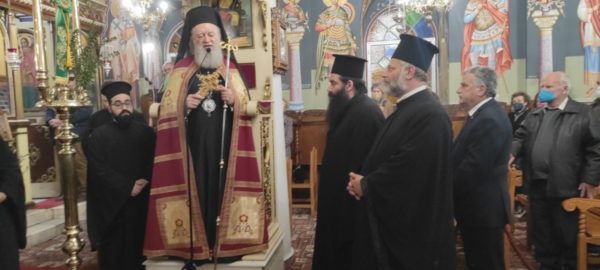 Ο Σεβασμιώτατος μετέβη στη δεύτερη έδρα της Ιεράς Μητρόπολης, συνοδευόμενος από τον Αρχιμανδρίτη Νεκτάριο Ευγενικό και τον Διάκονο Σταύρο Καλαφάτη.