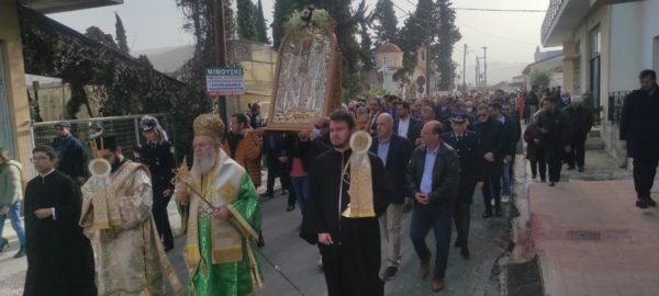 Αμέσως μετά, έλαβε χώρα μεγαλειώδης λιτανεία ανά τας οδούς της Ιστιαίας, με την συμμετοχή του Ιερού Κλήρου της περιφερείας, των εκπροσώπων των Αρχών του Τόπου, με επικεφαλής τον Υφυπουργό Αγροτικής Ανάπτυξης κ. Σίμο Κεδίκογλου, τον Βουλευτή Ευβοίας κ. Αθανάσιο Ζεμπίλη, τον Περιφερειάρχη Στερεάς Ελλάδος κ. Φάνη Σπανό, τον Αντιπεριφερειάρχη Ευβοίας κ. Γεώργιο Κελαϊδίτη, τους Δημάρχους Ιστιαίας-Αιδηψού κ. Ιωάννη Κοντζιά και Διρφύων-Μεσσαπίων κ. Γεώργιο Ψαθά, τον Λιμενάρχη Αιδηψού Αντιπλοίαρχο κ. Σωτήριο Δανίκα και σύμπαντος του πιστού Λαού.