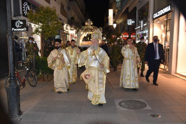 Ο Σεβασμιώτατος κ. Χρυσόστομος ομίλησε κατάλληλα προς τους λιτανευτές των Επιταφίων, που κατέκλυσαν την Παραλία της Χαλκίδος, αναφερθείς και τους ευχήθηκε πατρικά εν όψει της Αναστάσεως.