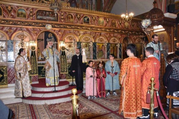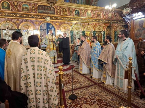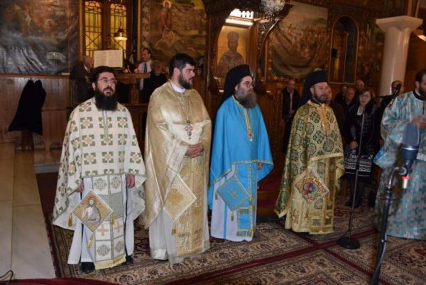 Λίγο πριν το «Δι’ ευχών», ο Θεοφιλέστατος κ. Νικόδημος ευχήθηκε εορτίως στον συλλειτουργό Αρχιδιάκονο του Μητροπολιτικού Ναού των Αθηνών Ιωάννη Καρπασινό, ο οποίος επέλεξε να έρθει να εορτάσει μαζί μας τα ονομαστήριά του ως αδελφός. Τον ευχαρίστησε για την παρουσία του και του ευχήθηκε να τον αξιώνει ο Θεός κρειττόνων χαρισμάτων. Επίσης, αφού εδήλωσε τη χαρά του, για την πολυπληθή συμμετοχή των εκκλησιασθέντων και ευχήθηκε σε όλους εορτίως, εξέφρασε λόγους τιμής, επαίνου και ευχαριστίας προς μεν τον επί πεντηκονταετία πρωτοψάλτη της Ενορίας κ. Ιωάννη Κουρούπη και προς τον προσφάτως λαβόντα Πτυχίο Βυζαντινής Μουσικής, από τη Σχολή της Ι. Μητροπόλεως, λαμπαδάριο κ. Γεώργιο Αλεξίου.