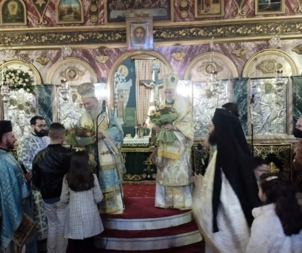 Λίγο πριν την απόλυση ο π. Νικόλαος καλωσόρισε τον Θεοφιλέστατο, επ’ ευκαιρία της πρώτης του επισκέψεως και ιερουργίας στην Ενορία του Αγίου Ιωάννου και έπειτα παιδιά του Κατηχητικού Σχολείου της Ενορίας προσέφεραν ανθοδέσμες στους Αρχιερείς.