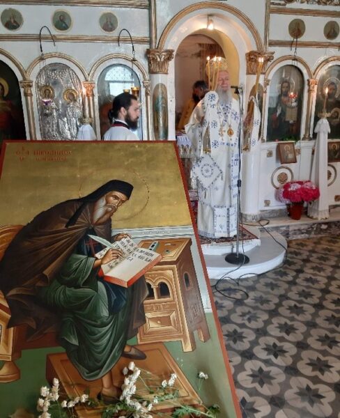 Λίγο πριν την απόλυση της Θείας Λειτουργίας, στην οποία έψαλλε ο κ. Στυλιανός Μπενής με μαθητές του, ο Σεβασμιώτατος κήρυξε τον θείο λόγο, αναφερθείς στην ορθόδοξη πατερική φυσιογνωμία του Αγίου Νικοδήμου, χαρακτηρίζοντάς τον, όπως και η ιερή υμνολογία σοφό, όχι απλώς επειδή ήταν κάτοχος, αλλά κυρίως διότι έκανε, δια της ασκήσεως, ολόκληρο τον εαυτό του σκήνωμα της του Θεού Σοφίας, δηλαδή του ίδιου του Ιησού Χριστού, ενώ έκανε ιδιαίτερη αναφορά στον προκάτοχό του Νικόλαο, ο οποίος καθιέρωσε την πανήγυρη και προέτρεψε τους πιστούς είναι και εκείνοι εραστές της Σοφίας του Θεού, με την μελέτη των Θείων Γραφών, την συμμετοχή στην μυστηριακή ζωή της Εκκλησίας και την συχνή Θεία Κοινωνία.