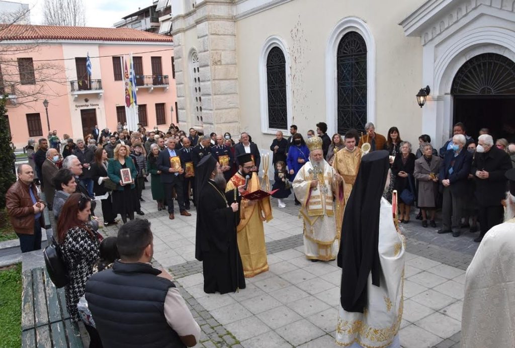 Πριν την Απόλυση της Θείας Λειτουργίας τελέσθηκε μνημόσυνο υπέρ αναπαύσεως των βιαίως κοιμηθέντων στο σιδηροδρομικό δυστύχημα των Τεμπών, όπως όρισε η Ιερά Σύνοδος της Εκκλησιάς της Ελλάδος και των κεκοιμημένων Μητροπολιτών Χαλκίδος, ενώ αμέσως μετά έλαβε χώρα η καθιερωμένη Λιτάνευση των Ιερών Εικόνων, πέριξ του Ιερού Ναού, στο τέλος της οποίας, κατά την τάξη, ο Σεβασμιώτατος ανέγνωσε το σχετικό απόσπασμα από το Συνοδικό της Ορθοδοξίας.