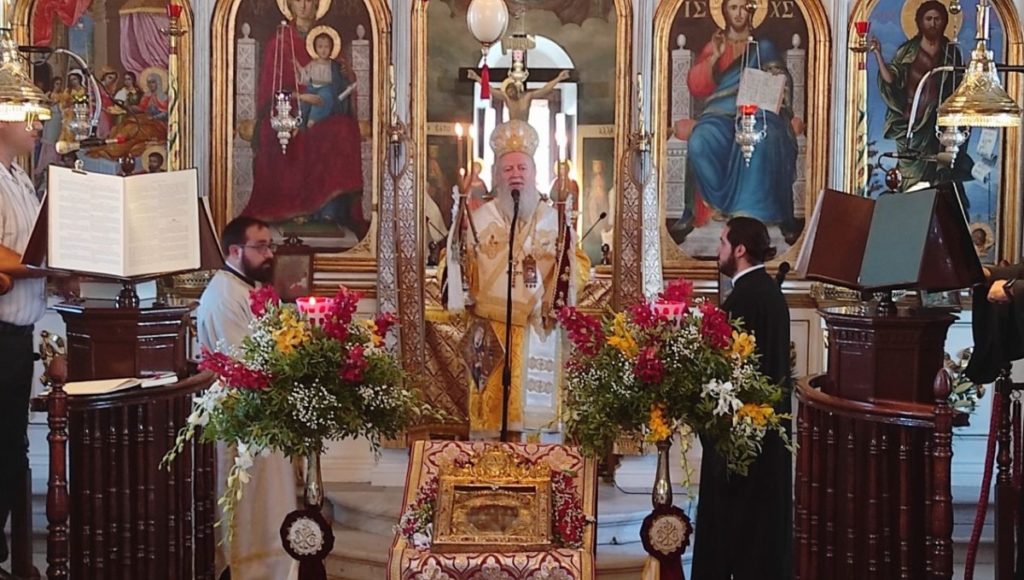 Την κυριώνυμη ημέρα της Εορτής, Κυριακή 2 Ιουλίου 2023, σύμφωνα με τοπικό έθιμο που θέλει να λειτουργούν και οι δύο Ενοριακοί Ναοί της Χώρας, ο Σεβασμιώτατος χοροστάτησε, λειτούργησε και κήρυξε τον θείο λόγο στον Ι. Ν. Γενεθλίου της Θεοτόκου, όπου ευρισκόταν και η Ιερά Εικόνα της Παναγίας.