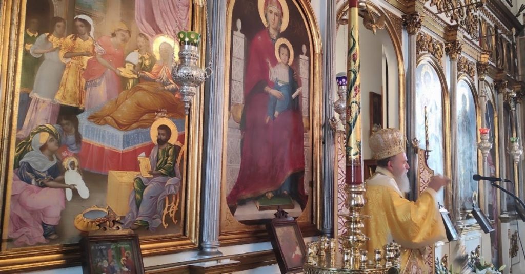 Την κυριώνυμη ημέρα της Εορτής, Κυριακή 2 Ιουλίου 2023, σύμφωνα με τοπικό έθιμο που θέλει να λειτουργούν και οι δύο Ενοριακοί Ναοί της Χώρας, ο Σεβασμιώτατος χοροστάτησε, λειτούργησε και κήρυξε τον θείο λόγο στον Ι. Ν. Γενεθλίου της Θεοτόκου, όπου ευρισκόταν και η Ιερά Εικόνα της Παναγίας.