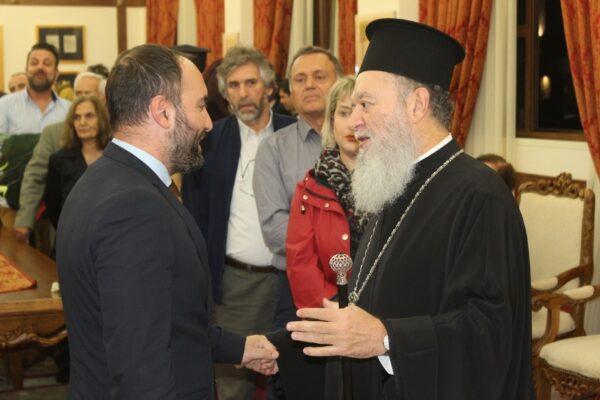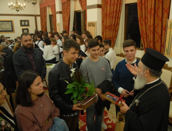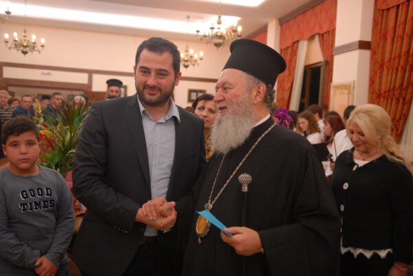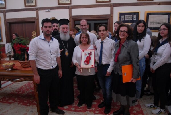 Το απόγευμα της κυριωνύμου ημέρας, ο Σεβασμιώτατος Μητροπολίτης μας δέχθηκε τις ευχές των Αρχών και του Λαού στην Αίθουσα του Θρόνου της Ιεράς μας Μητροπόλεως, κάτω από την όμορφη μελωδία των παιδιών της Χορωδίας – Ορχήστρας Νέων της Ιεράς Μητροπόλεως, υπό την διεύθυνση του μουσικού κ. Παυλου Κουρμπέτη, τα οποία με πολλή αγάπη προσήλθαν στην γιορτή του πνευματικού τους πατέρα και τραγούδησαν εξαιρετικά γνωστά τραγούδια της πλούσιας ελληνικής μουσικής.