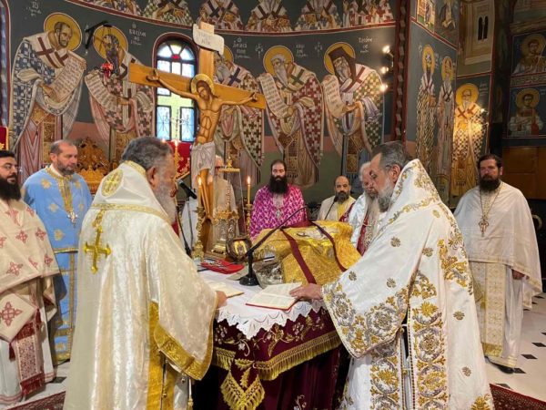 Προ της απολύσεως ο Σεβασμιώτατος Γόρτυνος ευχαρίστησε τους δύο Αρχιερείς για την έκφραση αγάπης προς το πρόσωπό του και επιπλέον τον Πανιερώτατο κ. Αγαθάγγελο για την ευγενική παραχώρηση της πρωτοκαθεδρίας στη Θεία Λειτουργία. Ευχήθηκε εόρτια προς όλους, ειδικά προς τις εορτάζουσες και τους εορτάζοντες και παρεκάλεσε όλους να προσεύχονται για την άνωθεν ενίσχυσή του στη νέα του διακονία.