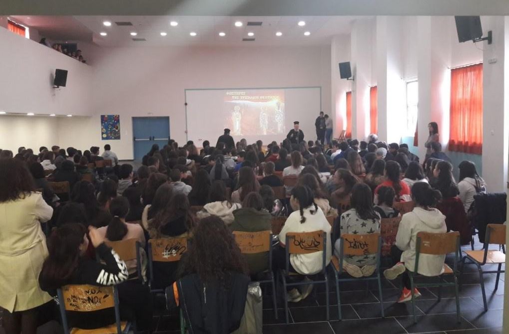 Με λόγο καρδιακό και σύγχρονο, όπως κάθε φορά που απευθύνεται σε νέους ανθρώπους, ο Σεβασμιώτατος κ. Χρυσόστομος μίλησε στους μαθητές του Σχολείου για τους Τρεις Ιεράρχες, τονίζοντας ιδιαίτερα κάποια κύρια χαρακτηριστικά της ζωής και της διδασκαλίας τους.