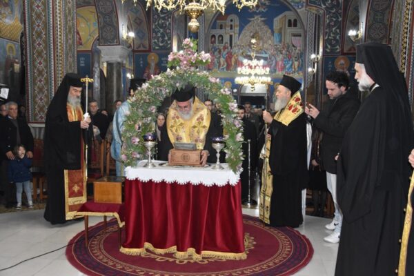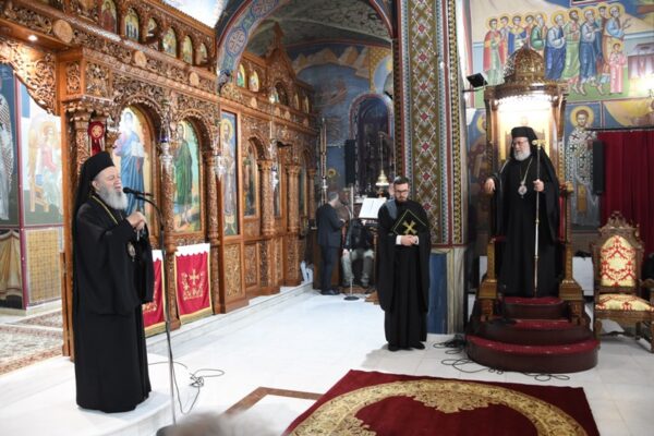 Στο τέλος της Θείας Λειτουργίας ο Σεβασμιώτατος Μητροπολίτης Χαλκίδος κ. Χρυσόστομος, ευχαρίστησε τους αγίου Αρχιερείς, τον Πρωτοσύγκελλο π. Ιάκωβο για την ευλογία της μετακομιδής των ιερών Λειψάνων των Αγίων, ενώ απευθυνόμενος προς τον Κλήρο και τον Λαό, μεταξύ των οποίων ο πρώην Βουλευτής και Ευεργέτης της Ι. Μητροπόλεως κ. Άγγελος Πνευματικός, η Δήμαρχος Χαλκιδέων κ. Έλενα Βάκα, η Πρόεδρος του Δημ. Συμβουλίου κ. Δήμητρα Σακελλαράκη, τους παρακάλεσε να συνεχίσουν να προσεύχονται διαρκώς στο Θεό για εκείνον ώστε, όσα καλά με πολλή αγάπη λέγονται για εκείνον, ο ίδιος να αγωνίζεται για να τα εφαρμόζει προς δόξαν Θεού και πνευματική ωφέλεια των πιστών της Εκκλησίας.