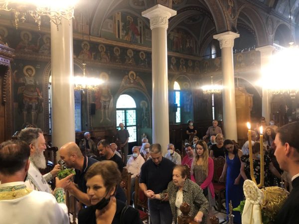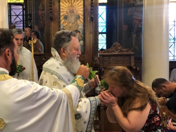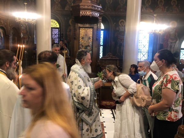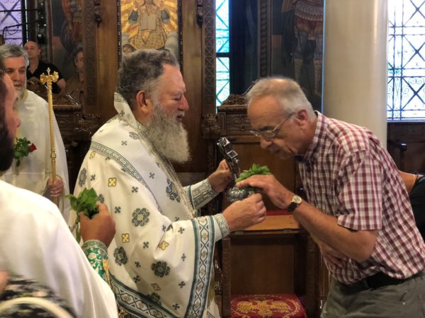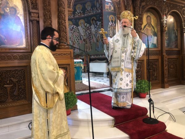 Ο Σεβασμιώτατος χοροστάτησε κατά την Ακολουθία του Όρθρου και κατά την τελετή της Υψώσεως του Τιμίου Σταυρού, η οποία πραγματοποιήθηκε πριν την έναρξη της Θείας Λειτουργίας και προσέφερε στους χριστιανούς του τον Τίμιο Σταυρό προς προσκύνηση και κλωναράκια από το βασιλικό και τα άνθη που στόλιζαν τον Σταυρό, ενώ, στη συνέχεια προεξήρχε στη Θεία Λειτουργία.