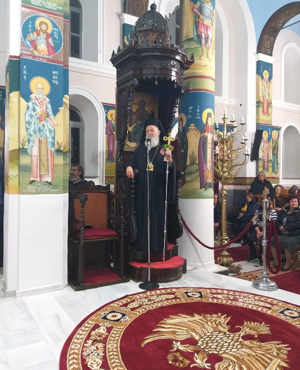 Κατά τη διάρκεια του Εσπερινού χοροστάτησε ο Σεβασμιώτατος άγιος Χαλκίδος, ο οποίος κήρυξε τον θείο λόγο αναφερθείς στην μεγάλη ευλογία που απολαμβάνει ο τόπος μας, που κατά τους έσχατους καιρούς ανέδειξε άλλους δύο αγίους, τους νέους Οσίους Πορφύριο και Ιάκωβο. Κατακλείοντας το λόγο ο Σεβασμιώτατος αναφέρθηκε με θερμά λόγια και στον Εφημέριο της Ενορίας, ο οποίος σε μικρό χρονικό διάστημα και με προσωπική εργασία ανακαίνισε τον Ενοριακό Ναό, εργαζόμενος ταυτόχρονα την καλλιέργεια τον πιστών με ιδιαίτερη φιλοτιμία, και αμέσως μετά τον χειροθέτησε Αρχιμανδρίτη προκαλώντας συγκίνηση στους Ενορίτες, οι οποίοι αναφώνησαν το «ΑΞΙΟΣ» επικροτώντας την επιλογή του Επισκόπου τους.