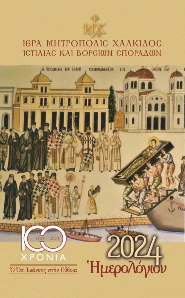 Το φετινό Ημερολόγιο, το οποίο επιμελήθηκε ο Προϊστάμενος του Μητροπολιτικού Ι. Ναού Αγ. Δημητρίου Χαλκίδος Αρχιμ. Αιμιλιανού Χρήστου, είναι αφιερωμένο στα εκατό χρόνια από την μετακομιδή του ιερού λειψάνου του Οσίου Ιωάννου του Ρώσου από το Προκόπι της Καππαδοκίας στην Εύβοια.