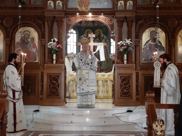 Λίγο πριν την απόλυση, ο Σεβασμιώτατος καλωσόρισε τους πιστούς στον φυσικό τους χώρο, δηλαδή τον Ιερό Ναό της κοινής, προς τον Θεό, προσευχής και λατρείας, οι οποίες πρέπει να επιτελούνται «εν πνεύματι και αληθεία», όπως δίδαξε ο Ιησούς Χριστός στη Σαμαρείτιδα Αγία Φωτεινή και όταν αυτό συμβαίνει, μεταβάλει τους πιστούς από πίνοντες σε πηγές του ζώντος ύδατος της χάριτος του Χριστού.