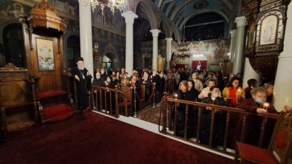 Το απόγευμα της ίδιας ημέρας, στον Μητροπολιτικό Ιερό Ναό Αγίου Δημητρίου Χαλκίδος ο Σεβασμιώτατος κ. Χρυσόστομος, πλαισιωμένος από τον Πρωτοσύγκελλό του, Αρχιμανδρίτη Νικόδημο Ευσταθίου και τους Ιερείς της Χαλκίδος, χοροστάτησε στον Α΄ Κατανυκτικό Εσπερινό «της Συγγνώμης», την πρώτη ιερά ακολουθία της Μεγάλης Τεσσαρακοστής, στην οποία παρέστη συμπροσευχόμενος ο Θεοφιλέστατος Επίσκοπος Ωρεών κ. Φιλόθεος-Αρχιγραμματεύς της Ιεράς Συνόδου και έψαλλαν θαυμάσια ο Πρωτοψάλτης και ο Λαμπαδάριος του Μητροπολιτικού Ιερού Ναού κ. Γεώργιος Καραγκούνης και κ. Ιωάννης Δέδες με τις χορωδίες τους.