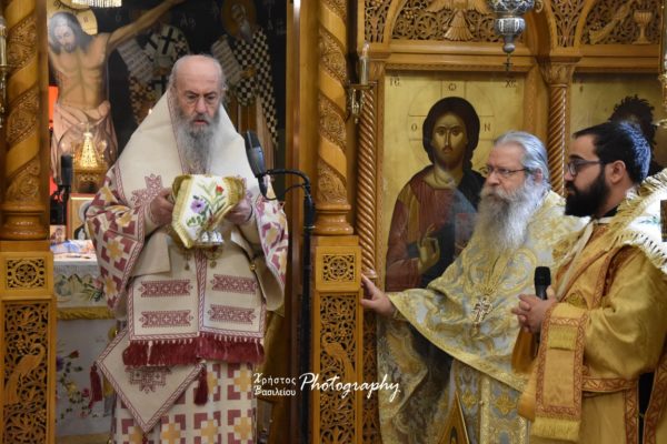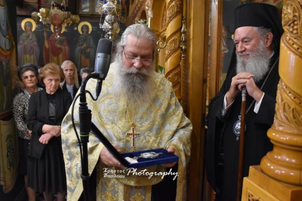 Λίγο πριν την απόλυση του Εσπερινού, ο Καθηγούμενος της Ι. Μονής, αρχιμ. Γαβριήλ Εμμανουηλίδης δώρισε στον Θεοφιλέστατο κ. Νικόδημο ένα αρχιερατικό εγκόλπιο, εκφράζοντας και με αυτό τον τρόπο την συμμετοχή της Αδελφότητας της Μονής στη χαρά της τοπικής Εκκλησίας για την επάξια εκλογή και χειροτονία του εις Επίσκοπο Σκοπέλου.