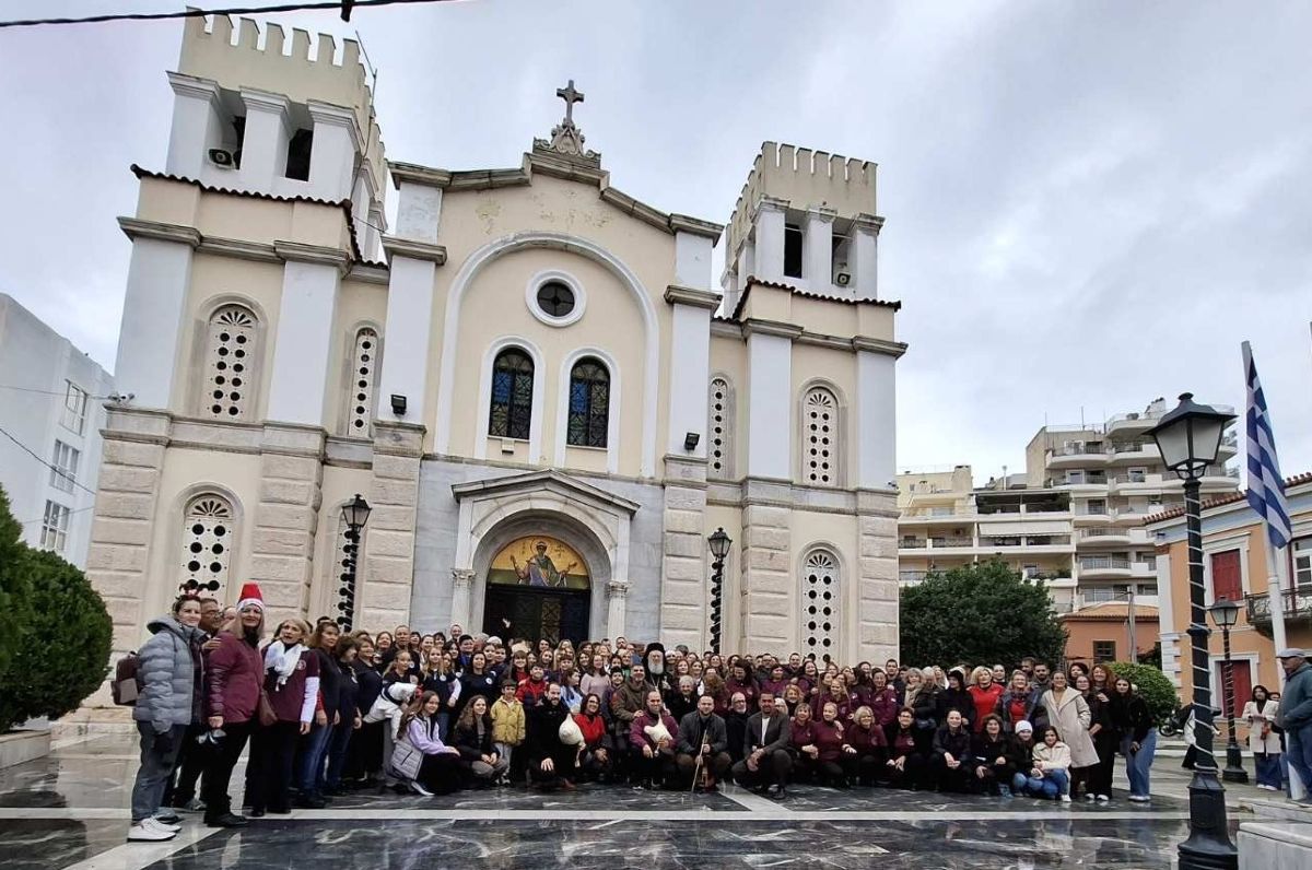 Και το δεύτερο αφορά εσάς όλους. Μου ήρθε στο νου ένα τραγούδι που λέγαμε εμείς όταν ήμασταν μικρότεροι και πηγαίναμε στα κατηχητικά και είχε τίτλο «Τα χριστιανόπουλα», που λέει: «τίποτα στο δρόμο δε μας σκιάζει, ούτε η μπόρα, ούτε το χαλάζι». Και για να ‘μαι ειλικρινής, όταν έβλεπα από τον Ι. Ναό τις ομπρέλες, έλεγα από μέσα μου, κρίμα τον κόπο των ανθρώπων, αλλά, βλέπεις, ο Θεός άλλα κελεύει, γιατί είδε ότι εσείς δεν φύγατε και δεν το βάλατε στα πόδια, αλλά μείνατε χωρίς να φοβόσαστε ούτε τη μπόρα, ούτε το χαλάζι.