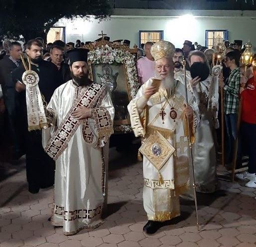 Μετά τον Εσπερινό πραγματοποιήθηκε και η Λιτάνευση της Ιεράς Εικόνος της Παναγίας, ανά τας οδούς της περιοχής.