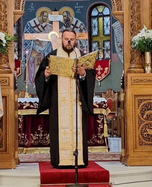 Τα ιερά αναλόγια διηκόνησαν οι ιεροψάλτες του Ι. Ναού κ. Γεώργιος Καραγκούνης και Ιωάννης Δέδες με την συμμετοχή μελών των βυζαντινών χορών τους, ενώ όλη η ιερά ακολουθία μεταδόθηκε ζωντανά από τον Ραδιοφωνικό Σταθμό της Ι. Μητροπόλεως (97,7 fm).