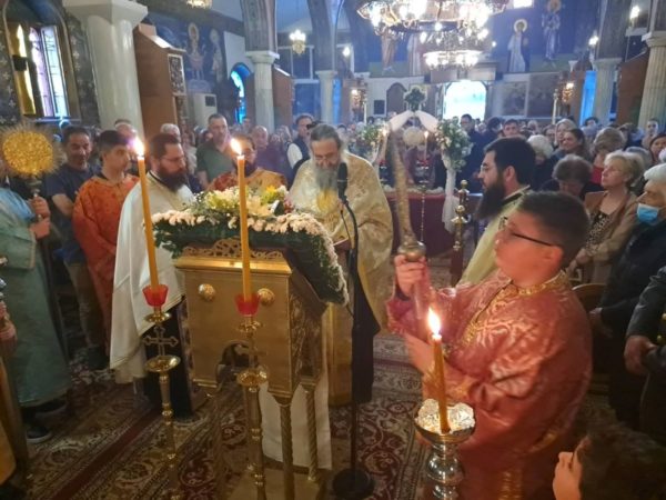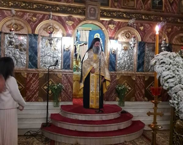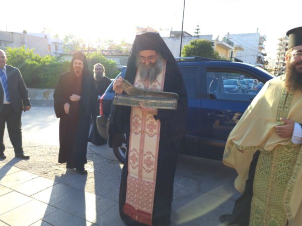 Καλωσόρισε τον Καθηγούμενο αρχιμ. Ναθαναήλ με θερμούς λόγους και τον ευχαρίστησε για τον κόπο, να κομίσει ο ίδιος το ιερό λείψανο της Αγίας Φωτεινής στη Χαλκίδα.