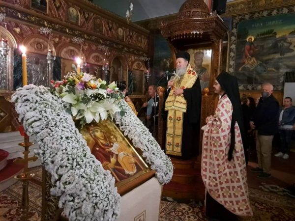 Επίσης, απευθύνθηκε με ευγνωμοσύνη στον Γέροντα και τη συνοδεία του, διότι, όσες φορές ο Σεβασμιώτατος έχει μεταβεί στο Άγιον Όρος, έχει γευθεί την αβραμιαία φιλοξενία της Ιεράς Μονής των Ιβήρων και τον παρεκάλεσε να μνημονεύει έμπροσθεν την ιεράς και θαυματουργού εικόνος της Παναγίας της Πορταϊτίσσης όλο το πλήρωμα της τοπικής μας Εκκλησίας.